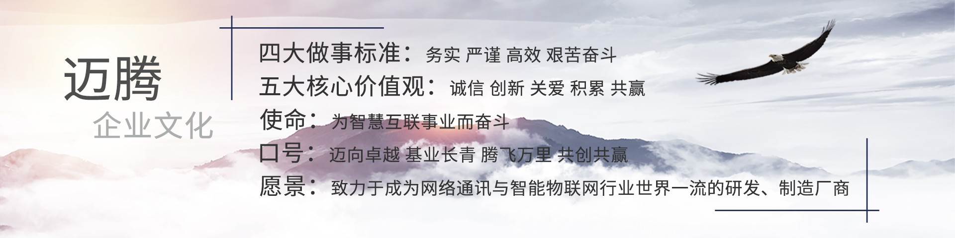 深圳市邁騰電子有限公司(簡稱邁騰),成立于2008年2月,是一家專注于網(wǎng)絡(luò)通訊與物聯(lián)網(wǎng)產(chǎn)品開發(fā)、生產(chǎn)、銷售及服務(wù)為一體的國家級(jí)高科技企業(yè)。目前是國、內(nèi)外網(wǎng)絡(luò)通訊與物聯(lián)網(wǎng)行業(yè)前列的研發(fā)、制造廠商。
